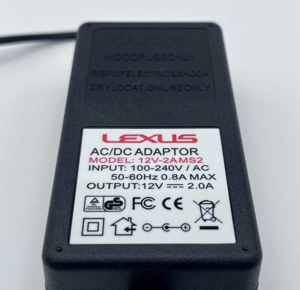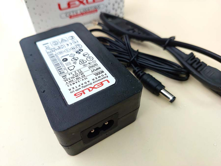 این محصول یک آداپتور برق 220 به 12 ولت از برند لکسوس با حداکثر جریان خروجی اسمی 2 آمپر میباشد. این آداپتور از نوع بین راهی و دارای کابل برق متصل (غیر قابل جداسازی) میباشد. حداکثر جریان خروجی این آداپتور در تست عملی حدود 1.6 آمپر میباشد. طول کابل ورودی و خروجی حدود 25 سانتیمتر است. سر فیش این محصول استاندارد با سایز 5.5 در 2.5 میلیمتر است که در انواع دستگاهها کاربرد دارد.