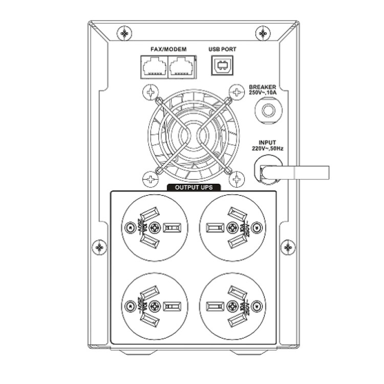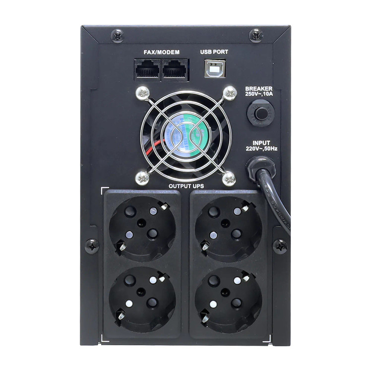 بدنه مستحکم و طراحی کمی بزرگتر نسبت به مدلهای کوچکتر، نشاندهنده ماهیت حرفهایتر دستگاه است. نمایشگر LCD در پنل جلو، اطلاعات دقیقی از وضعیت ولتاژ، ظرفیت باتری و بار مصرفی نمایش میدهد که برای مدیریت و بررسی عملکرد UPS بدون نیاز به اتصال به سیستم بسیار کارآمد است. همچنین وجود چهار خروجی برق، امکان اتصال مستقیم تجهیزات مختلف را فراهم کرده و در برخی سناریوها، نیاز به چندراهی برق را حذف میکند.