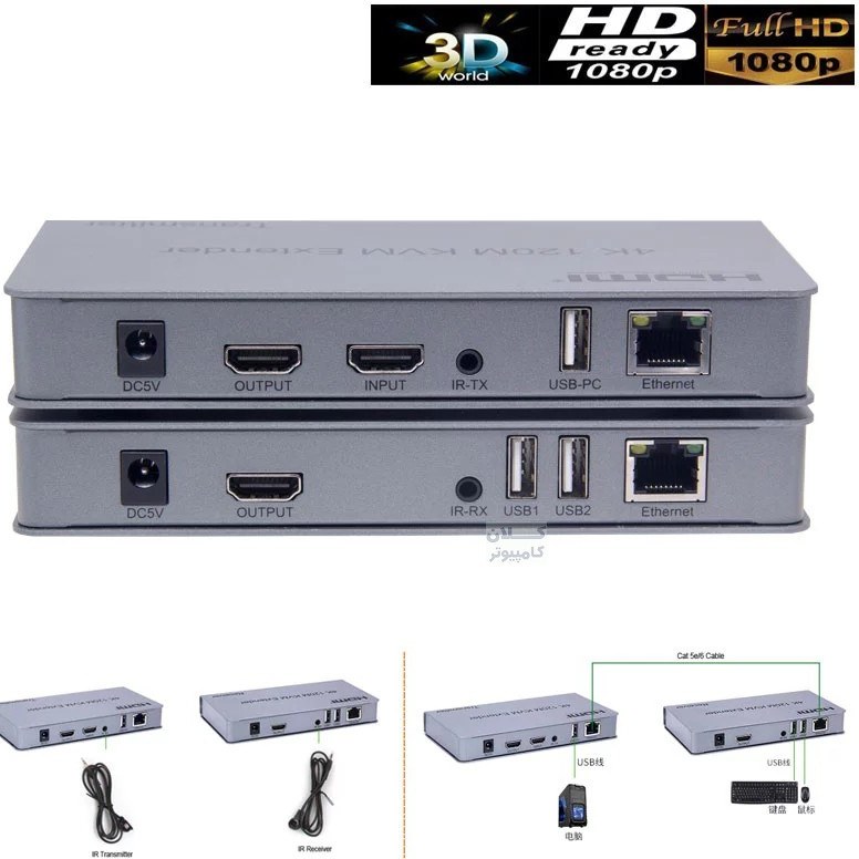 اکستندر HDMI و KVM تا 200 متر 4K با کابل شبکه و خروجی صدا