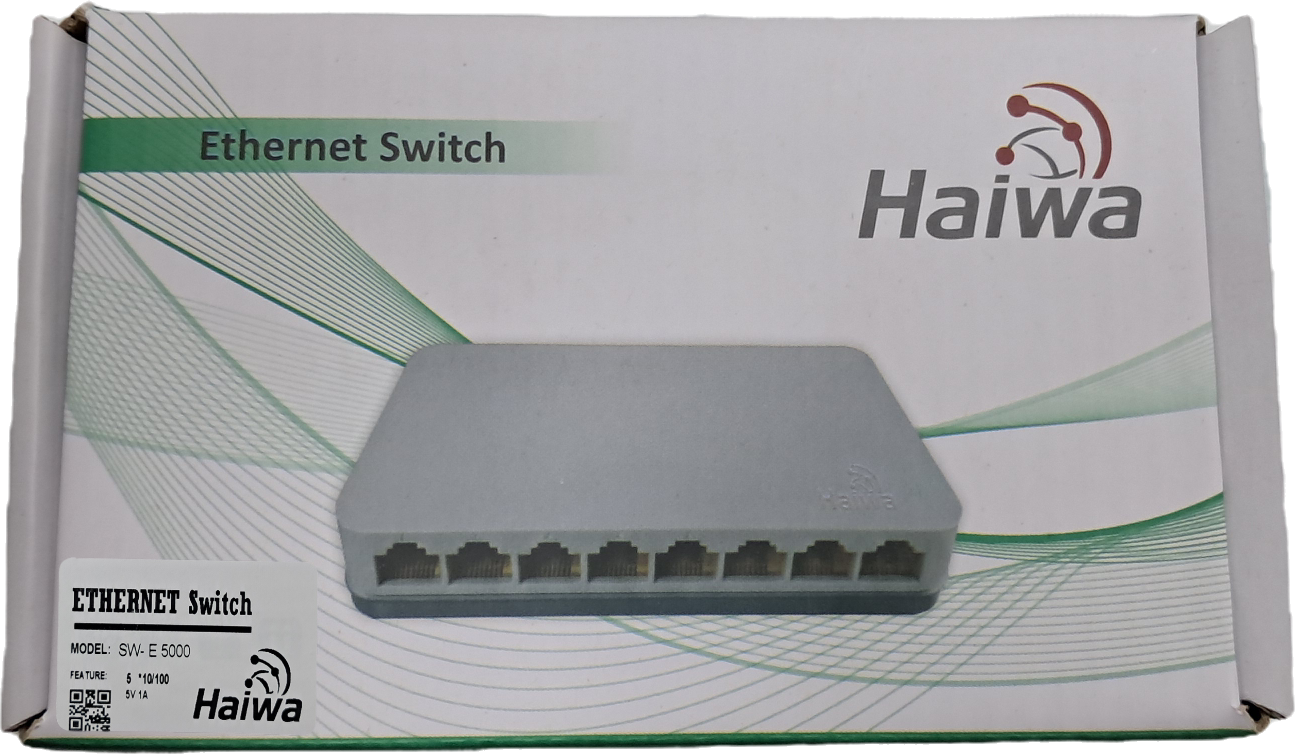 سوییچ «SW-E5000 » محصولی از برند «هایوا» (Haiwa) است. این سوییچ دارای 5 پورت LAN است و میتواند برای گسترش شبکه و متصلکردن تعداد بیشتری از کاربران به آن مورد استفاده قرار بگیرد. پورتهای LAN بهکاررفته درSW-E5000 از نوع 10/100 مگابیتی هستند که این سوییچ را به انتخاب مناسبی برای شبکههای خانگی تبدیل میکنند. تمام پورتهای LAN به قابلیت Auto MDI/MDIX مجهز هستند و میتوانید از هر نوع کابل مجهز به سوکت RJ45 روی آنها استفاده کنید. با استفاده از چنین سوییچی میتوانید کامپیوتر دسکتاپ و لپتاپ، کنسول بازی خانگی، ذخیرهساز NAS و دوربینهای نظارتی منزلتان را به شبکه وصل کنید. ظرفیت سوییچینگ در این محصول یک گیگابیت بر ثانیه است و پهنای باند انتقال داده در حالت استفاده از Full Duplex Mode تا 200 مگابیت بر ثانیه خواهد رسید. LED نشاندهندهی روشنبودن سوییچ، در قسمت بالای بدنه تعبیه شده است و LEDهای نشاندهندهی فعالیت هر پورت، روی همان پورت قرار گرفتهاند. برق مورد نیاز سوییچ، SW-E5000 توسط آداپتور خارجی تامین میشود و با استفاده از Green Technology بهکاررفته درون سوییچ، میزان مصرف برق آن بسیار ناچیز است.